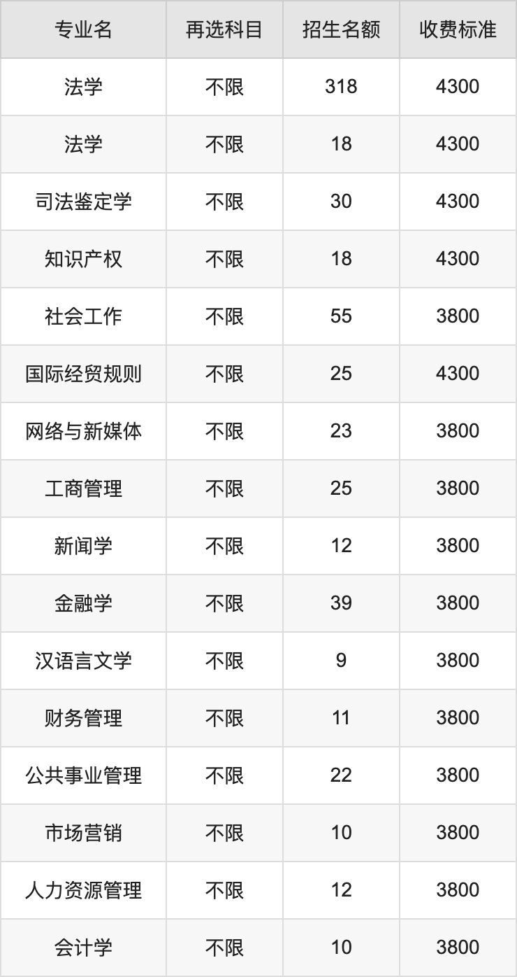 甘肃政法大学在历史组本科批招生的各个专业,每年的学费是3800元-15000元。招生人数最多的专业是法学,2024年招318人,学费是4300元。
