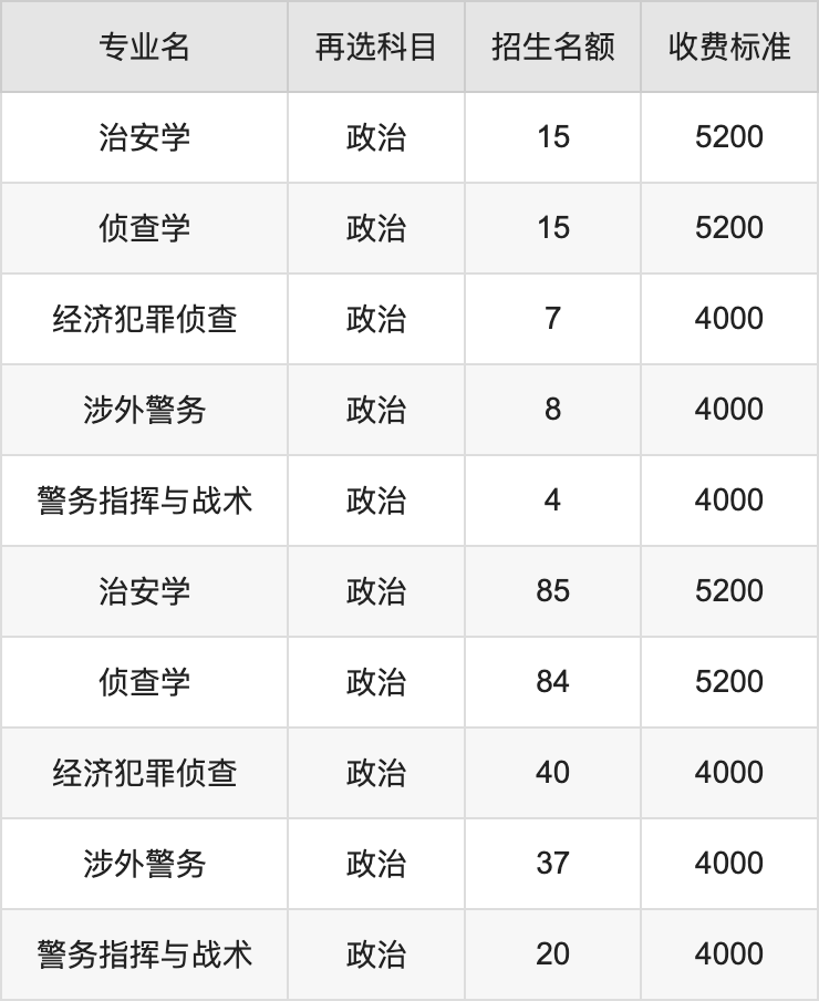 | 本科提前批 | 历史 | 警务指挥与战术 | 4 |