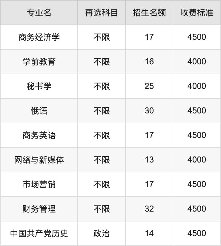 | 本科批 | 历史 | 秘书学 | 25 |