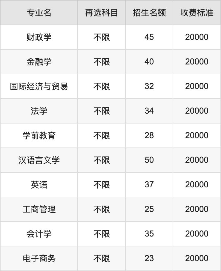 | 本科批 | 历史 | 汉语言文学 | 50 |