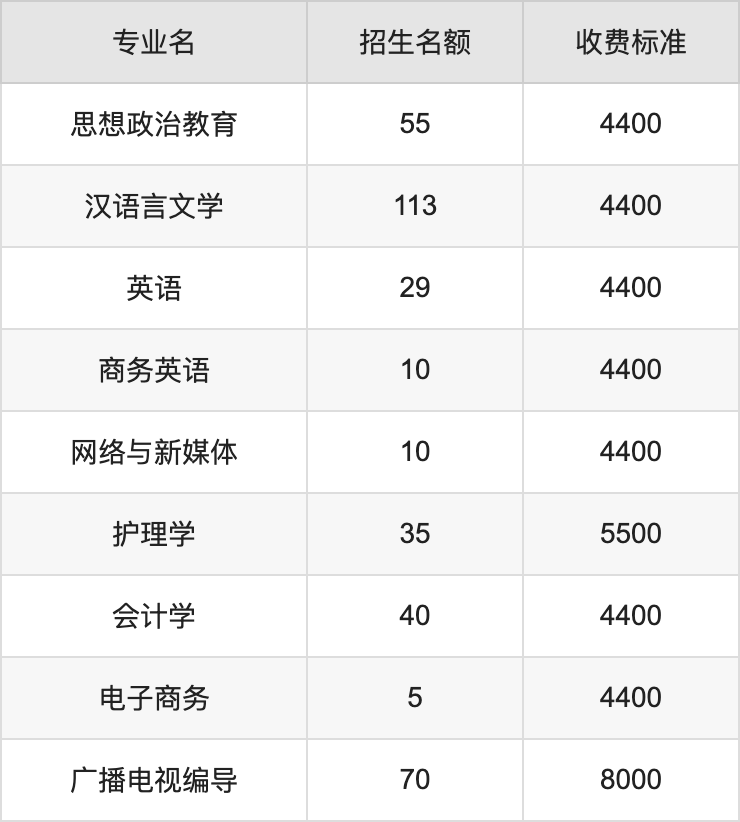 黄淮学院在文科本科二批招生的各个专业,每年的学费是4400元-8000元。招生人数最多的专业是汉语言文学,2024年招113人,学费是4400元。