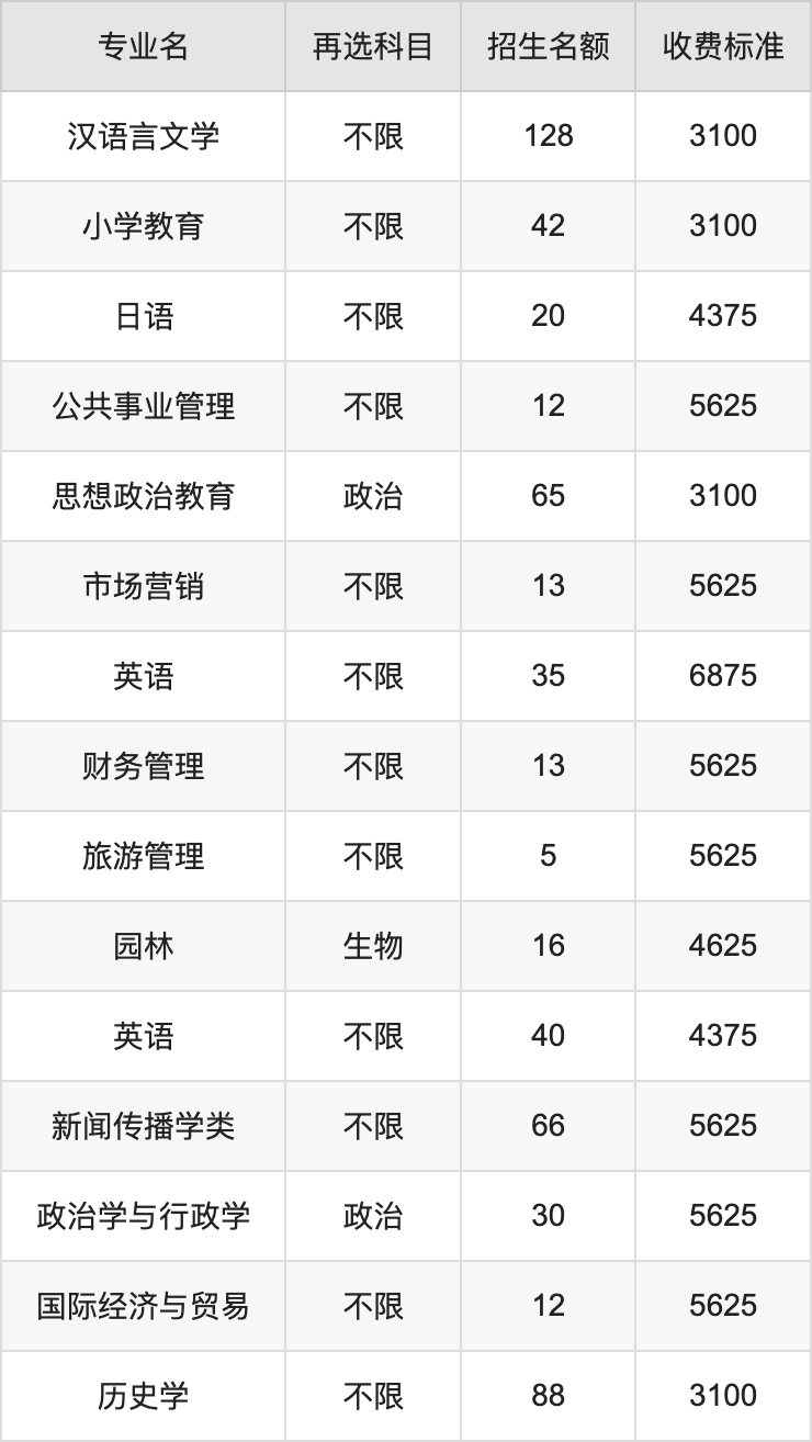长江师范学院在历史组本科批招生的各个专业,每年的学费是3100元-6875元。招生人数最多的专业是汉语言文学,2024年招128人,学费是3100元。