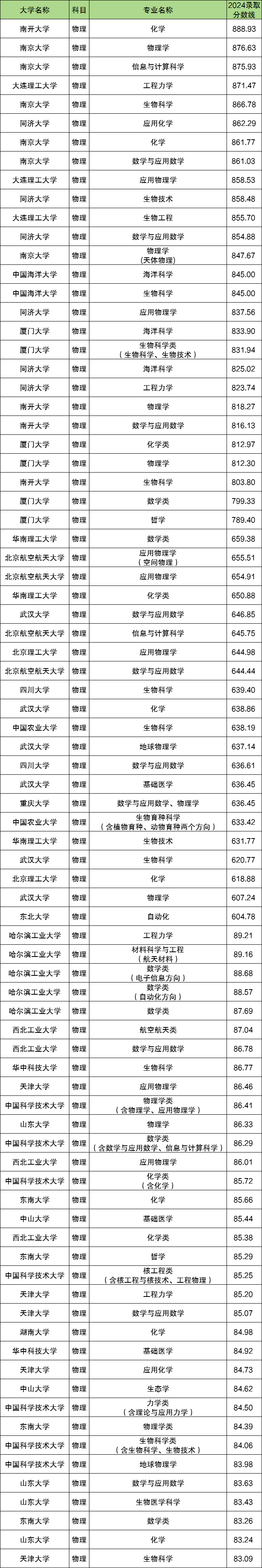 2024年江苏物理类南开大学的化学专业,录取分数线为888.93分;东北大学的自动化专业,录取分数线为604.78分。