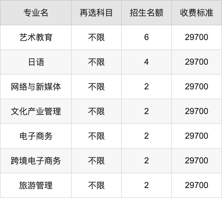 | 本科批 | 历史 | 文化产业管理 | 2 |