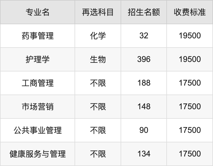 | 本科批 | 物理 | 药事管理 | 40 |