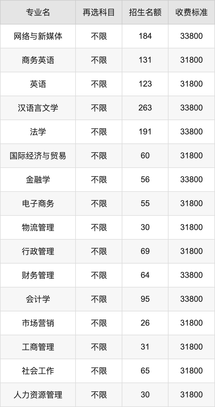 | 本科批 | 历史 | 国际经济与贸易 | 60 |