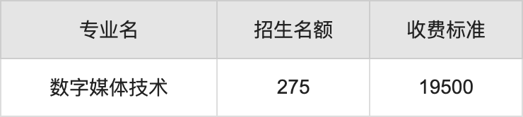 昆明传媒学院在文科高职专科招生的各个专业,每年的学费是19500元。招生人数最多的专业是数字媒体技术,2024年招275人,学费是19500元。