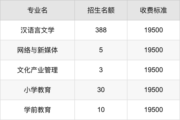 昆明传媒学院在文科二本招生的各个专业,每年的学费是19500元。招生人数最多的专业是汉语言文学,2024年招388人,学费是19500元。