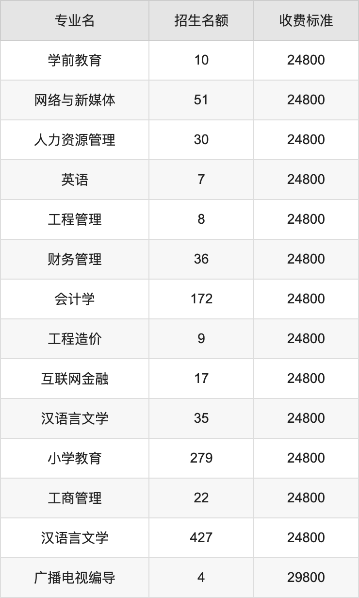 银川科技学院在文科第二批本科招生的各个专业,每年的学费是24800元-29800元。招生人数最多的专业是小学教育,2024年招279人,学费是24800元。