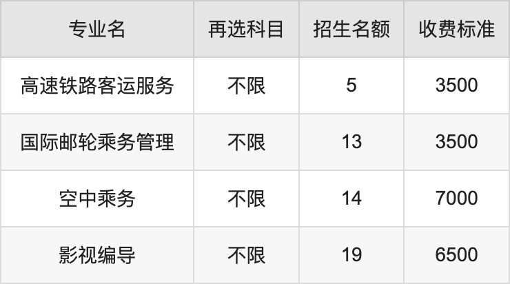 | 高职专科批 | 历史 | 空中乘务 | 14 |