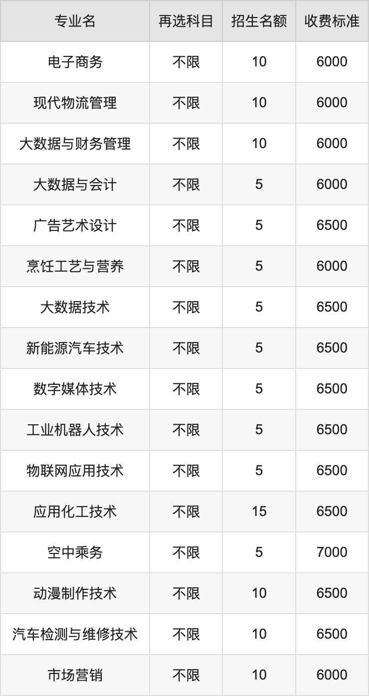 | 高职专科批 | 物理 | 市场营销 | 10 |
