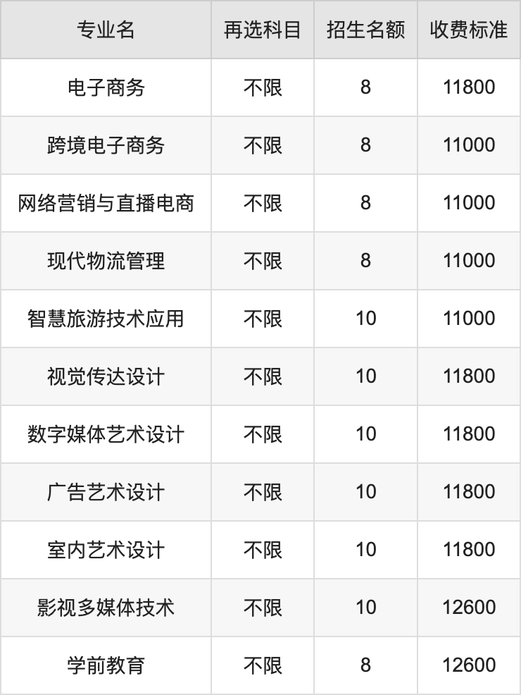 | 专科批 | 物理 | 跨境电子商务 | 10 |