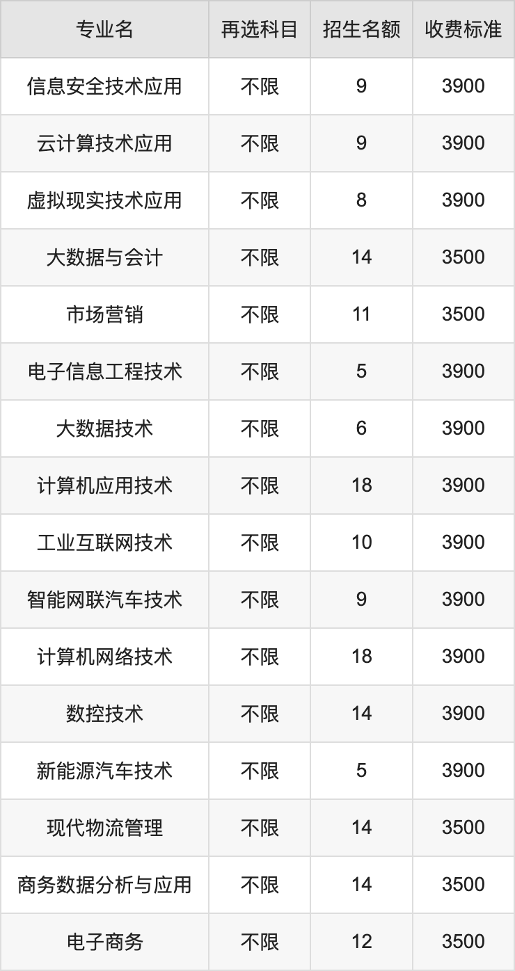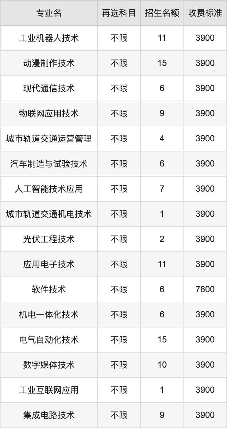 安徽电子信息职业技术学院在历史组高职专科批招生的各个专业,每年的学费是3500元-7800元。招生人数最多的专业是计算机应用技术,2024年招18人,学费是3900元。