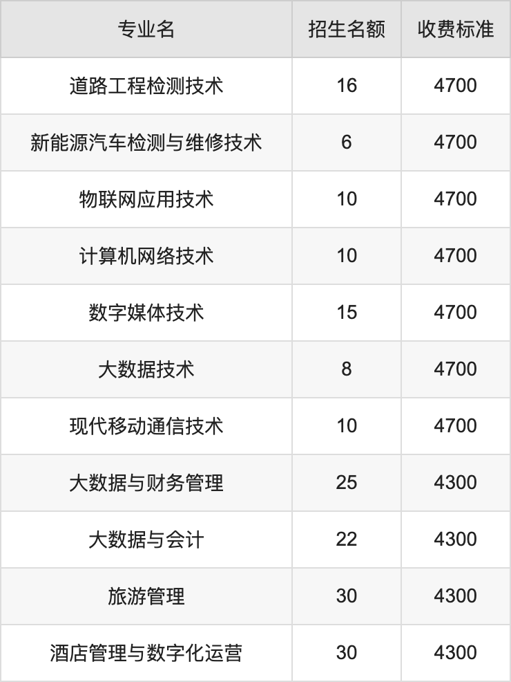 青海职业技术大学在文科普通专科招生的各个专业,每年的学费是4300元-4700元。招生人数最多的专业是旅游管理,2024年招30人,学费是4300元。