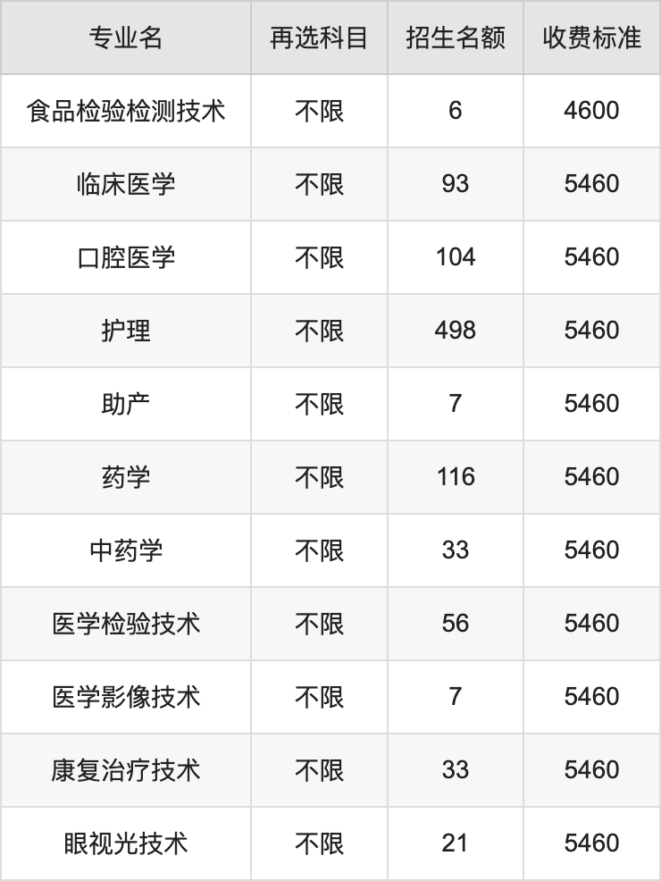 | 高职专科批 | 物理 | 临床医学 | 116 |