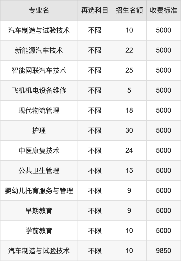 | 高职高专批 | 历史 | 汽车制造与试验技术 | 10 |