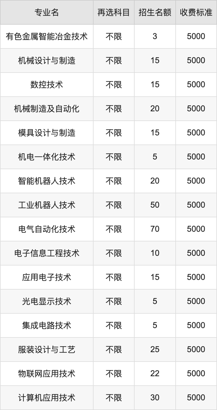| 高职高专批 | 历史 | 有色金属智能冶金技术 | 3 |