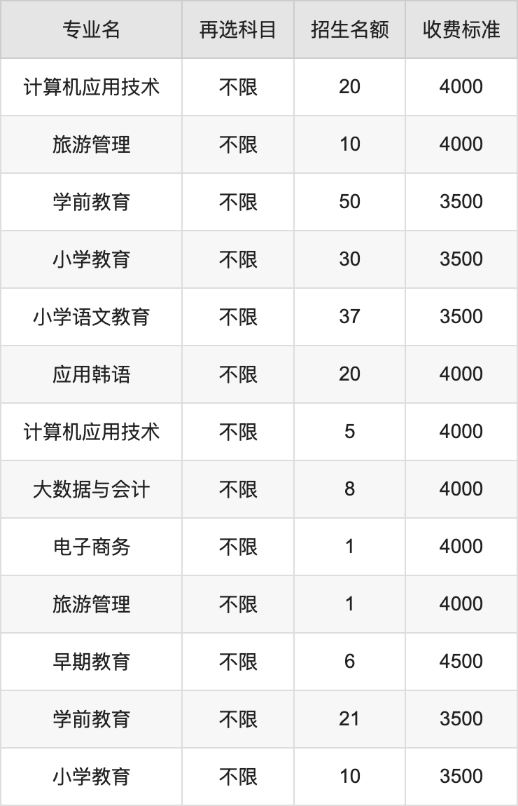 | 高职专科批 | 历史 | 小学教育 | 10 |