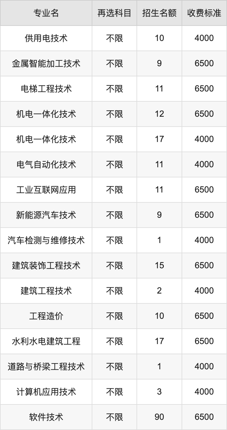 | 高职高专批 | 物理 | 工程造价 | 15 |