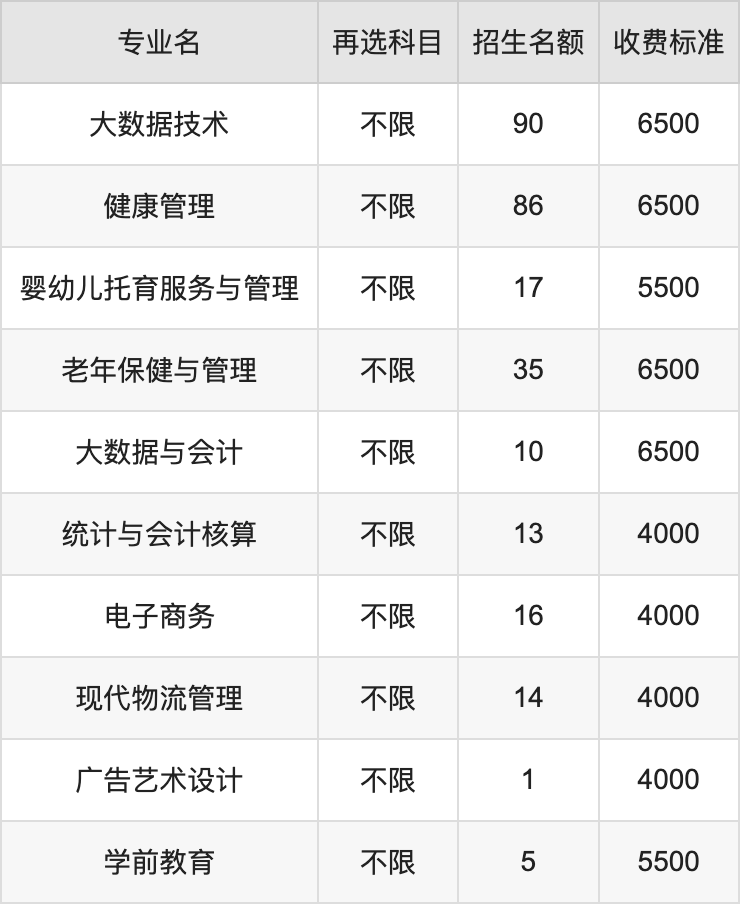 | 高职高专批 | 物理 | 大数据与会计 | 10 |