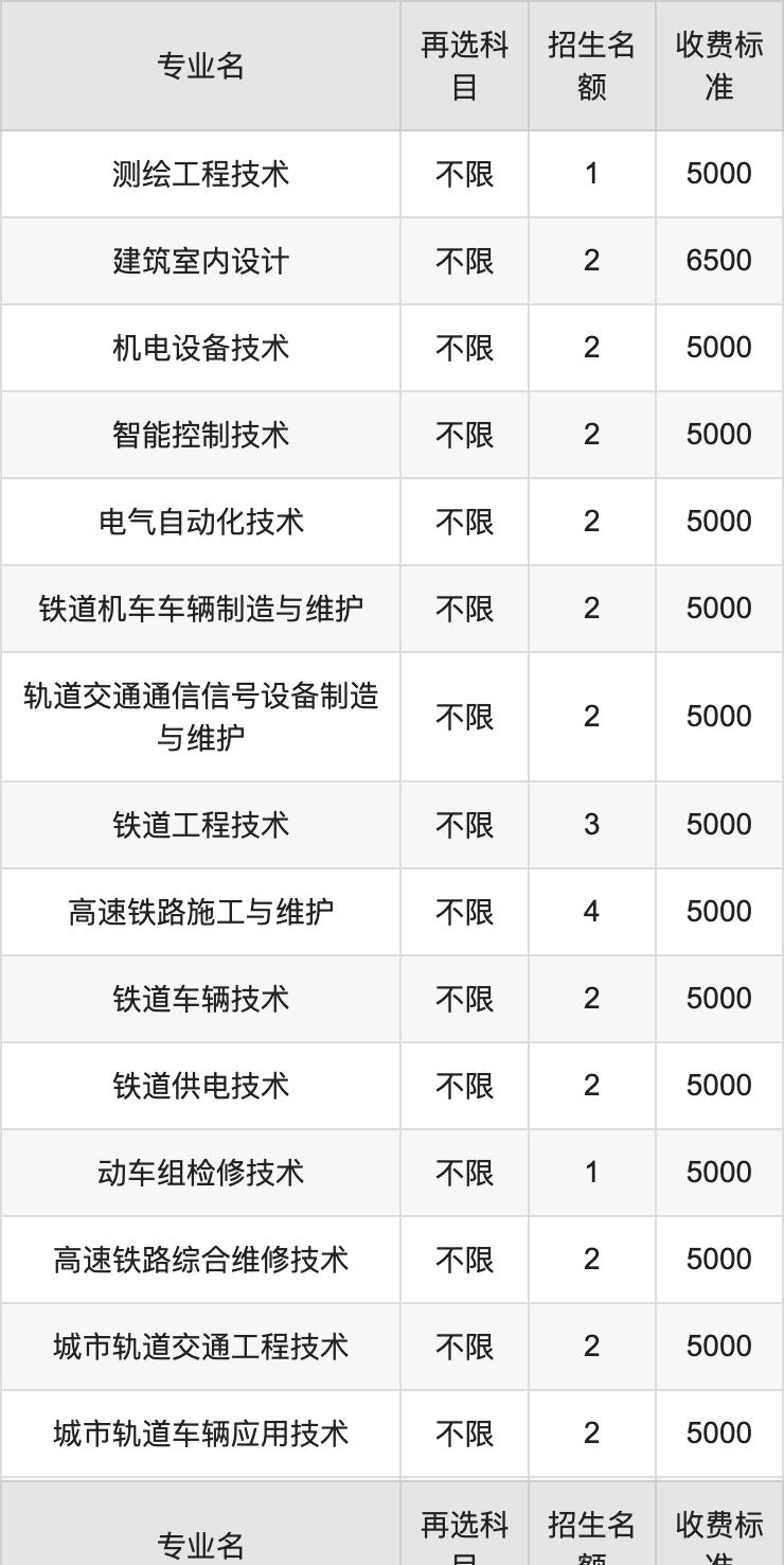 | 高职高专批 | 历史 | 铁道车辆技术 | 2 |