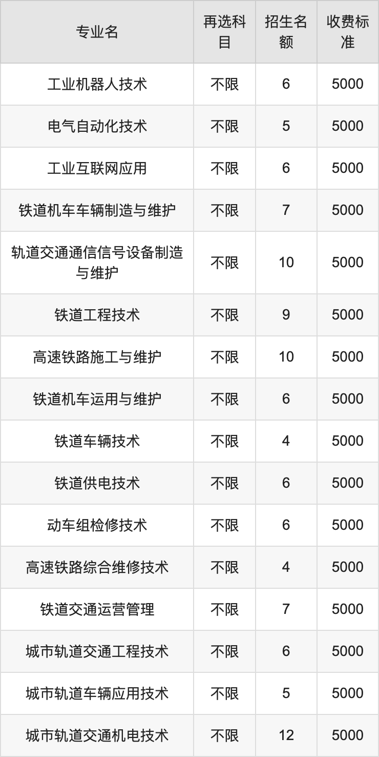 | 高职高专批 | 历史 | 铁道机车车辆制造与维护 | 2 |