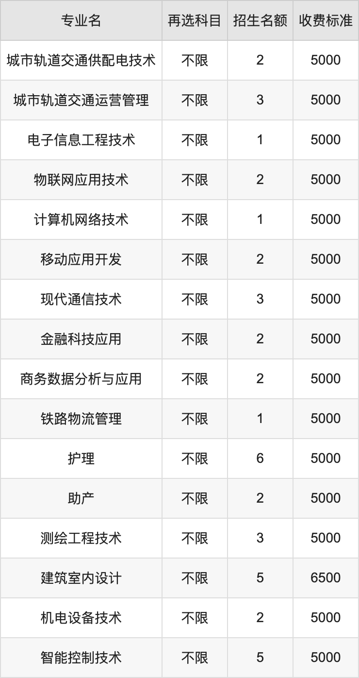 | 高职高专批 | 历史 | 城市轨道交通工程技术 | 2 |