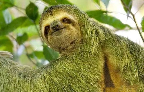 树懒本身已经很贴近背景色了,正因为树懒太懒,身上长满了绿藻在,也正是因为这些绿藻,可以起到保护色的作用,大型动物来了,树懒只需要,慢慢的闭上眼睛就可以了。
