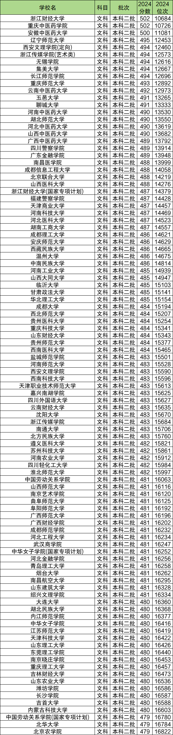 文科公办二本大学分数线排名前五:浙江财经大学(502分)、重庆中医药学院(502分)、安徽中医药大学(500分)、辽宁师范大学(495分)、西安文理学院(定向)(494分)。