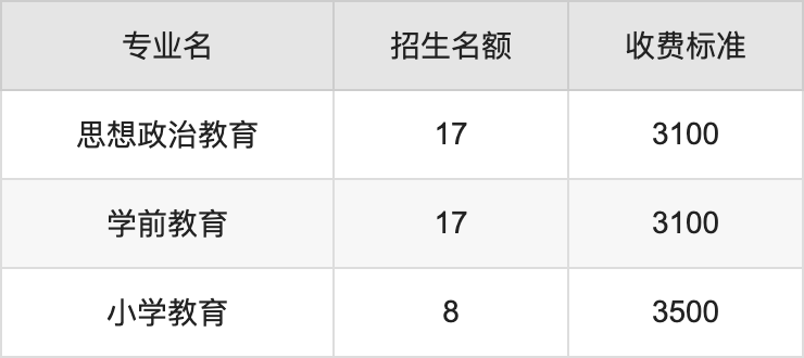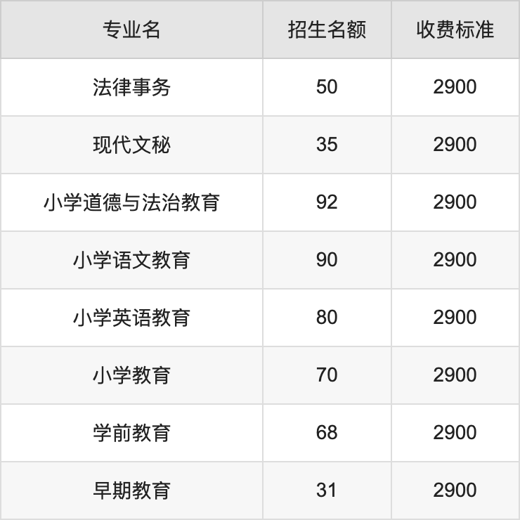 新疆和田学院在文科专科批招生的各个专业,每年的学费是2900元。招生人数最多的专业是小学道德与法治教育,2024年招92人,学费是2900元。
