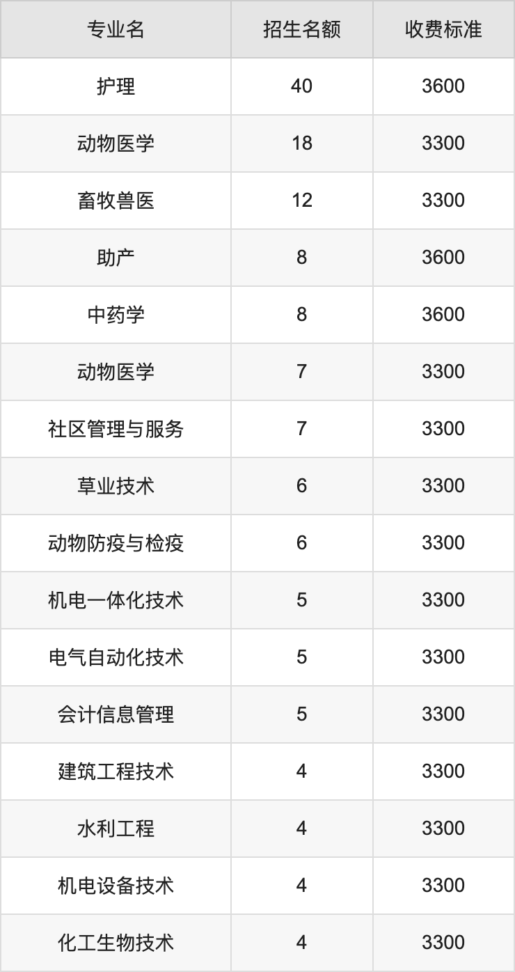 伊犁职业技术学院在文科专科批招生的各个专业,每年的学费是3300元-7800元。招生人数最多的专业是护理,2024年招40人,学费是3600元。
