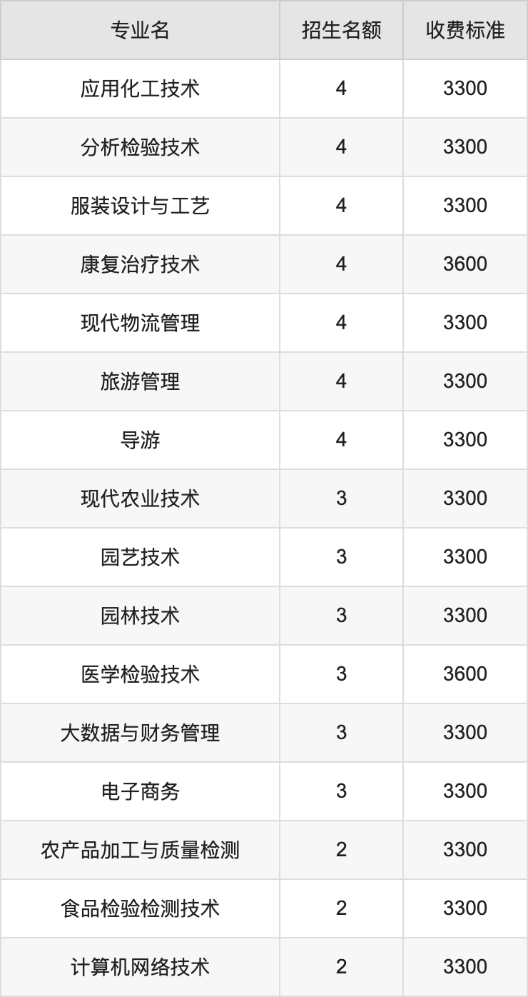 | 专科批 | 农产品加工与质量检测 | 2 |