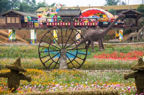 在大梁酒庄旁边,有个号称中国最大的稻草艺术主题乐园——田园迪士尼也开营了,是小朋友们玩乐的好去处。