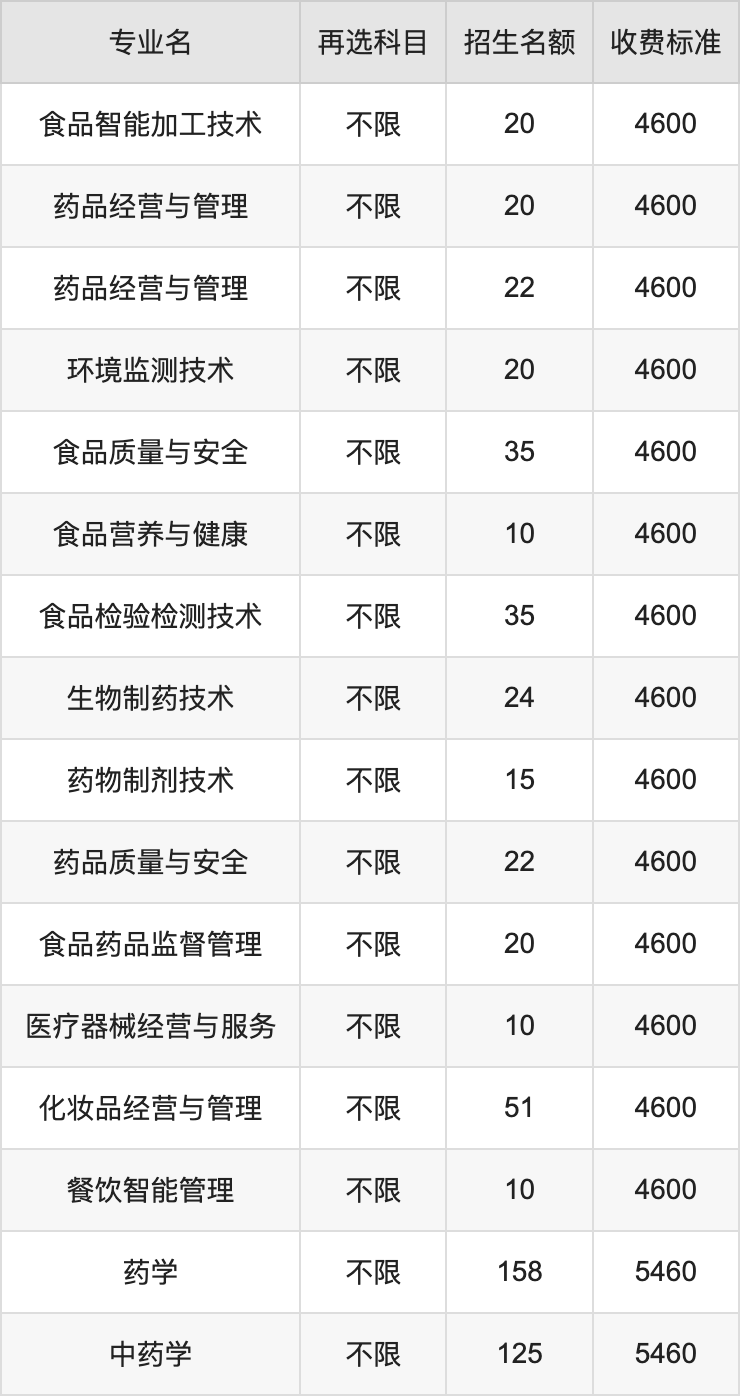 | 高职专科批 | 历史 | 药品经营与管理 | 20 |