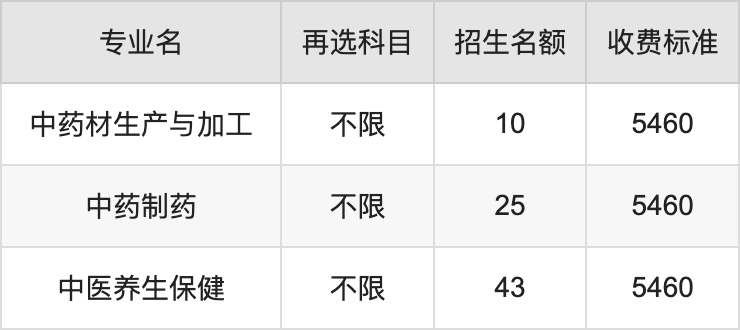 | 高职专科批 | 历史 | 中药材生产与加工 | 10 |