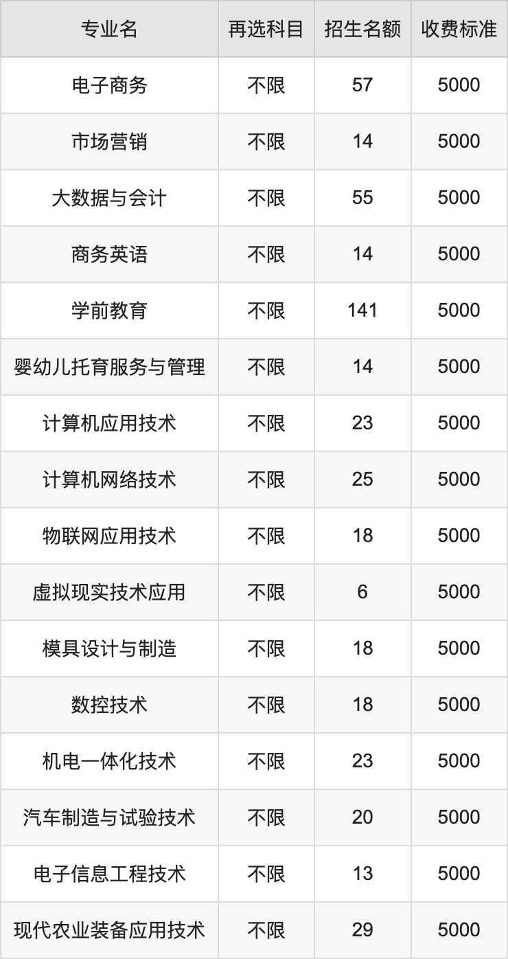 江西农业工程职业学院在历史组高职专科招生的各个专业,每年的学费是5000元。招生人数最多的专业是学前教育,2024年招141人,学费是5000元。