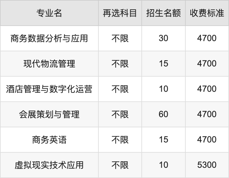| 专科批 | 历史 | 商务数据分析与应用 | 30 |