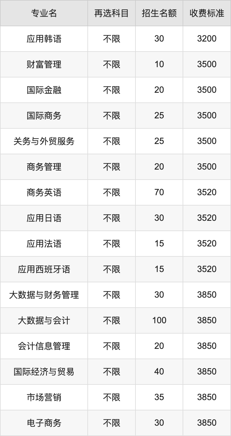 二、湖南外贸职业学院各专业收费标准