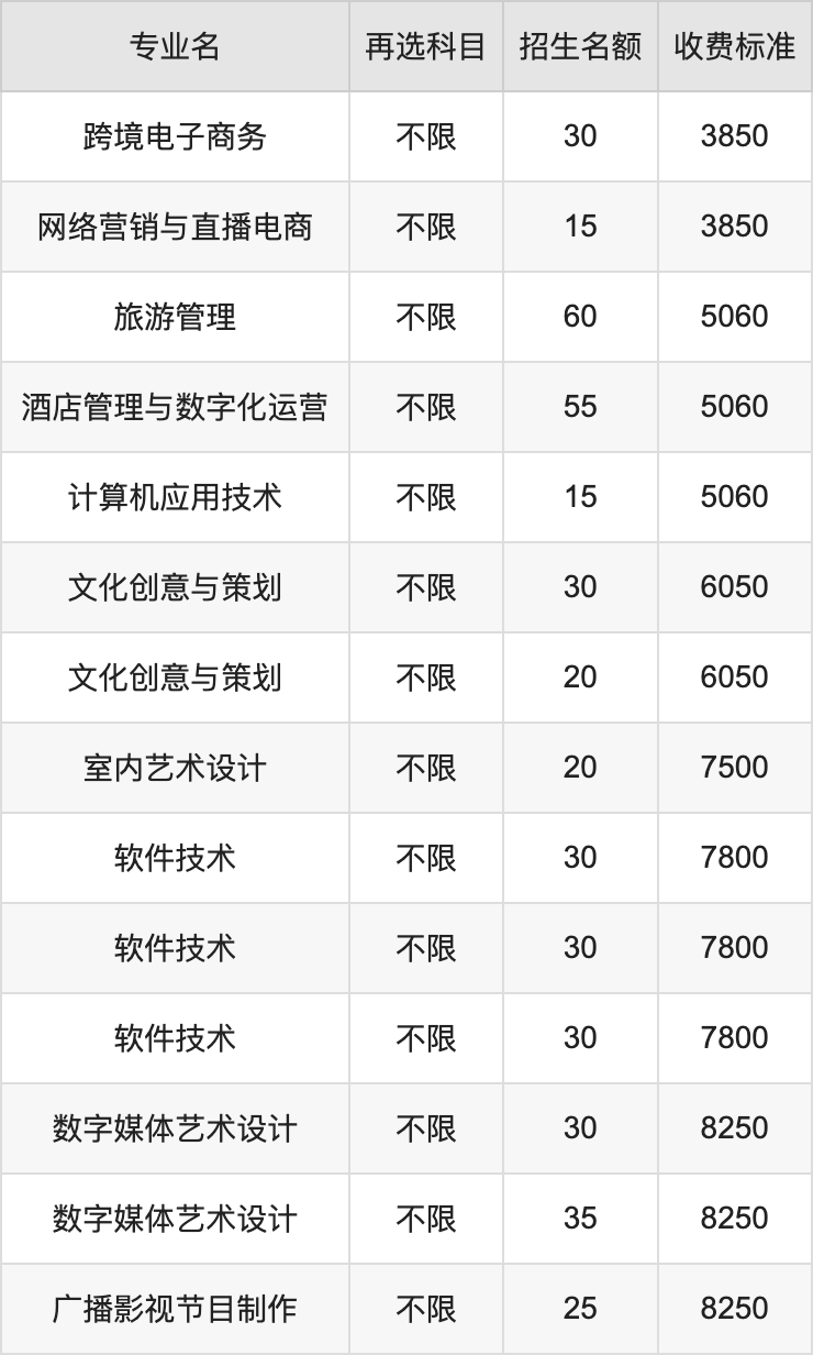 | 高职专科批 | 历史 | 广播影视节目制作 | 25 |