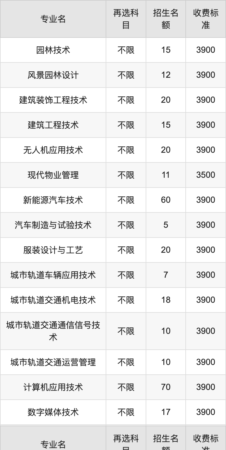 | 高职专科批 | 历史 | 建筑工程技术 | 15 |
