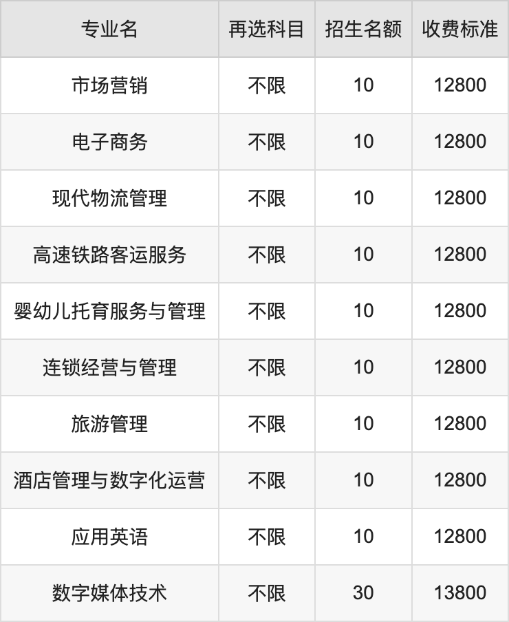 | 专科批 | 历史 | 连锁经营与管理 | 10 |