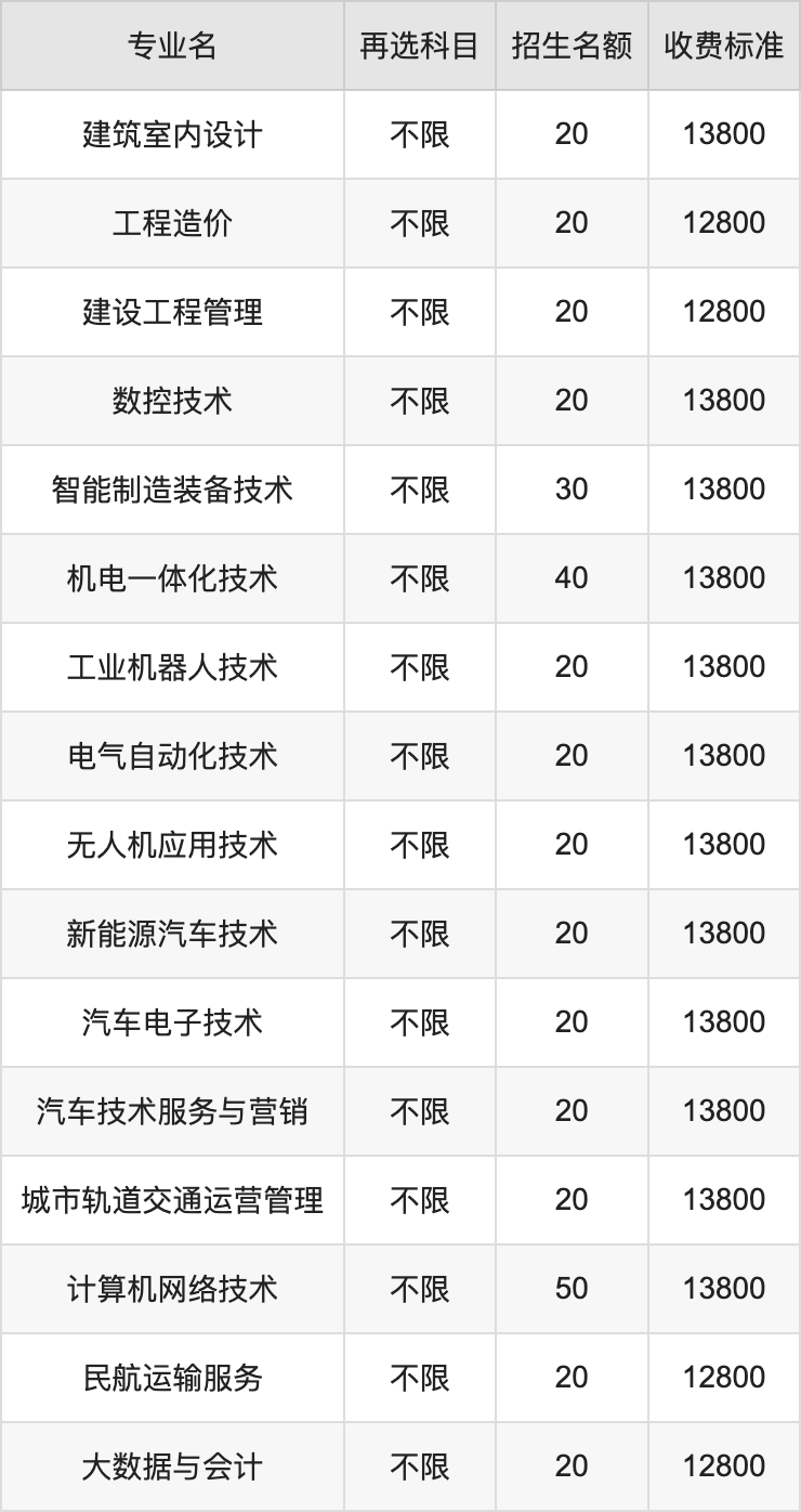 | 专科批 | 历史 | 城市轨道交通运营管理 | 20 |