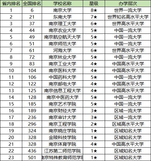 注:本文整理出的南京各大学排名均为南京公办本科院校的排名,更多院校排名可在本文上下方输入分数进入页面了解。