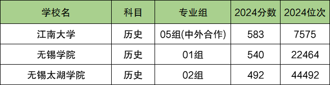 2024年无锡本科各大学专业组录取分数线(历史类):