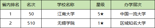 注:本文整理出的无锡各大学排名均为无锡公办本科院校的排名,更多院校排名可在本文上下方输入分数进入页面了解。