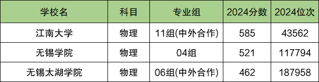 2024年无锡本科各大学专业组录取分数线(物理类):