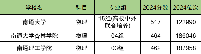 2024年南通本科各大学中,在物理类分数线最高、最难考的院校是南通大学(15组、高校中外联合培养),2024年录取分数517分,录取位次122990位;