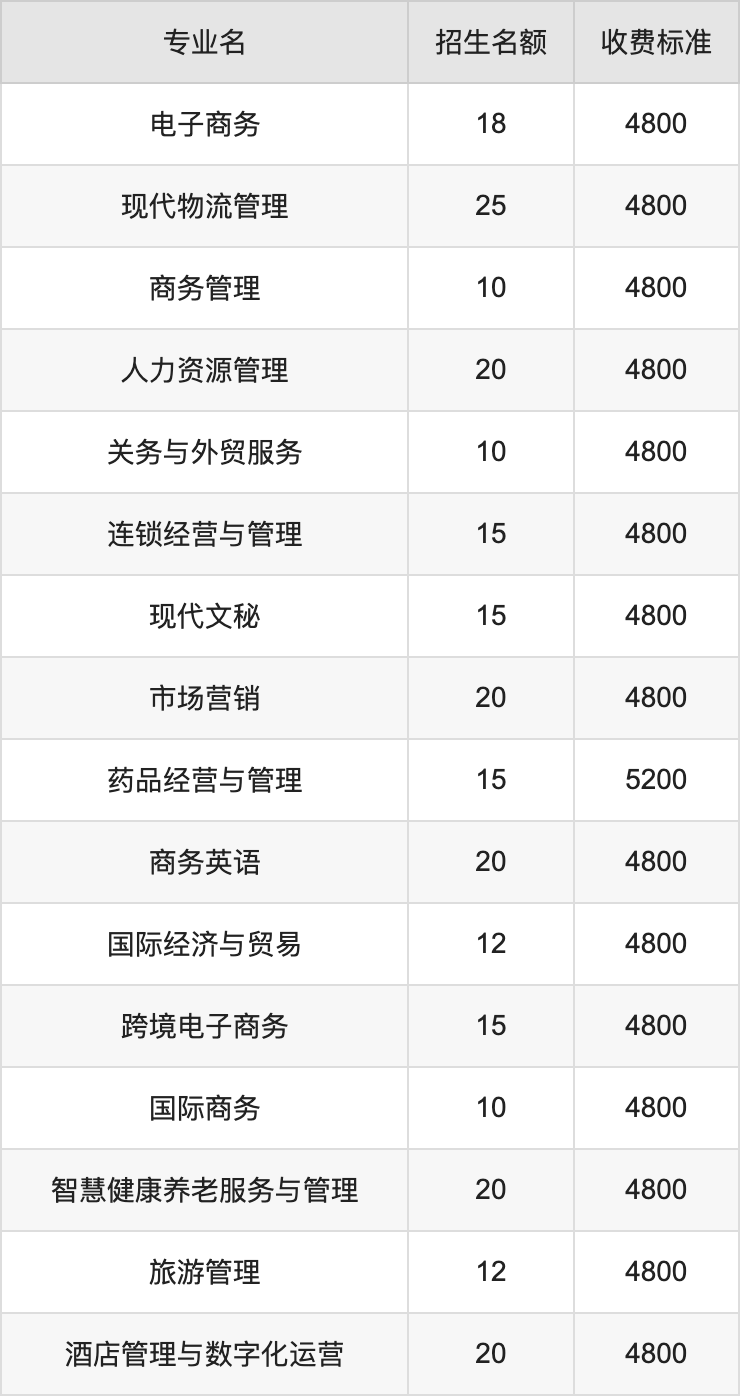 四川商务职业学院在文科专科批招生的各个专业,每年的学费是4800元-10000元。招生人数最多的专业是现代物流管理,2024年招25人,学费是4800元。