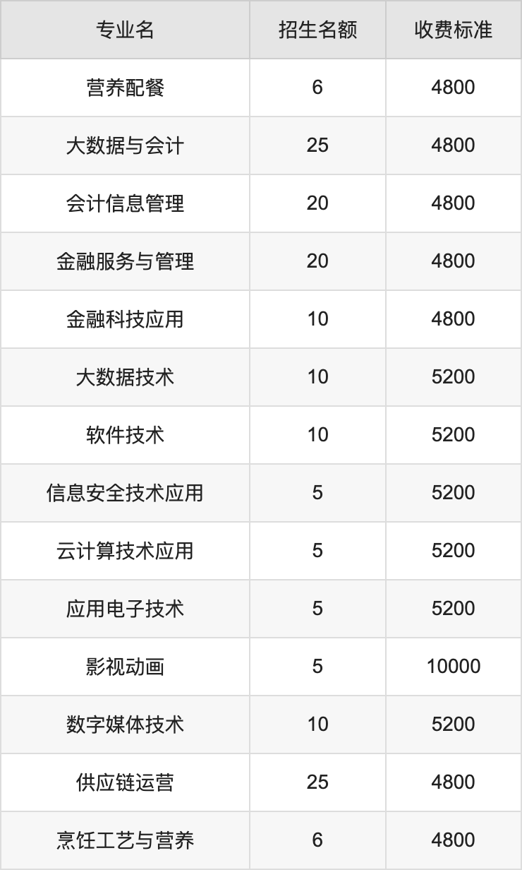 四川商务职业学院理科专科批共计30个招生专业,各专业每年的学费是4800元-10000元。