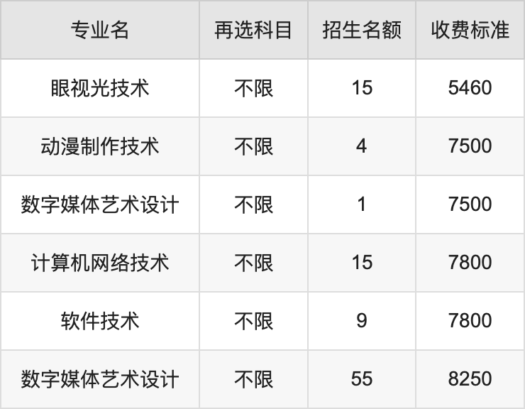 | 高职专科批 | 历史 | 数字媒体艺术设计 | 55 |